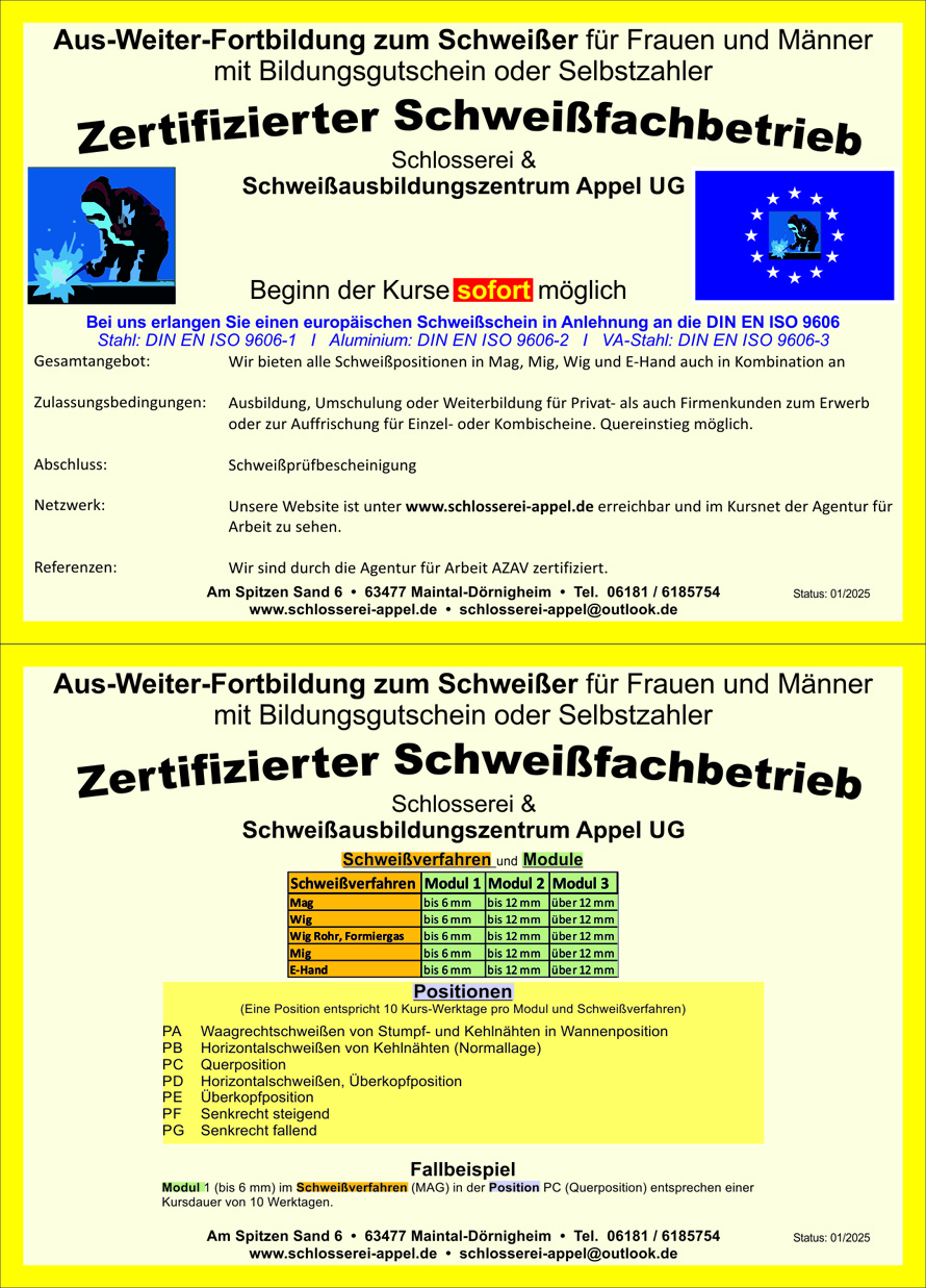 Bildungsangebote - Schlosserei und Schweissschule Appel - Handwerk mit Tradition